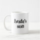 Cool black text design Bride's Son T-shirts, mugs, mousepads, buttons, tote bags, and other son of the bride gear that can be customized with text or a name. We have matching black text T-shirts and other items for all the members of the wedding party and family members!