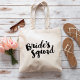 Custom bridal party tote bags with "Bride's Squad" graphic in a stylish brush script. Personalize it with your wedding date, wedding hashtag, names or other custom text. Perfect gift for bride, bridesmaids and wedding party!