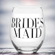 Gift your bridesmaid with a personalized Bridesmaid glass. It has the word "Bridesmaid" in a modern black font. Personalize the back with the bridesmaid’s name. The matching bride and maid of honor glasses can be found in my store, PageCreativeDesigns.