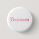 Button Pin casual fun fashion statement accessory printed with White Color background and Bridesmaid in Hot Pink Color text typography lettering design by TheFabricSeal print on demand shop at Zazzle.com #ZazzleMade https://www.zazzle.com/store/thefabricseal TheFabricSeal©️Original.