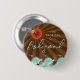 The Tropical Chic 'Bridesmaid' Cool Aqua Blue Waves And Orange Brown Sun, Modern Beach Wedding Name Tag Pin Button.