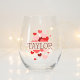 This monogram stemless wine glass makes a lovely wedding keepsake gift for your wedding party or bridesmaids. Stylish, minimalist design in trendy typography. The name template is set up ready for you to customize with recipient's name. Order this elegant keepsake for your big day now!