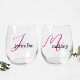 This monogram stemless wine glass makes a lovely wedding keepsake gift for your wedding party or bridesmaids. Stylish, minimalist design in trendy typography. The name template is set up ready for you to customize with recipient's initial and name. Order this elegant keepsake for your big day now!