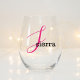 Bridesmaid Gift, Modern Elegant Monogram Stemless Wine Glass