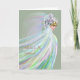 In invitation to be a bridesmaid in your upcoming wedding. The design is a fantasy bride with a floral head piece, veils and pastel swirls. The background is a light green.
