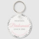 These keychains are designed to give as favors to bridesmaids in your wedding party. Designed to coordinate with our Pink & Gray Elegant Wedding Suite, they feature a simple yet elegant design with a white background, Pink & Gray text, and a silver faux foil floral border. Perfect way to thank your bridesmaids for being a part of your special day!