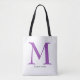 Simple tote bag is personalized with a large monogram initial - choose your first or last name initial - in purple and your full name below in black. Ideal for yourself, for your bridesmaids, book club, graduation gift, birthday gift, or any occasion. MORE colors in our store.