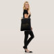 This Bridesmaid accessory bag features a handwritten gold script typography with swashes on a black background. Present your bridesmaids with a tote bag for small items traditionally presented at the rehearsal dinner, for use in the early morning before the wedding.