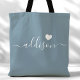 Bridesmaid Modern Script Heart Dusty Blue Tote Bag