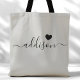 This chic tote bag features a beautiful Warm Gray background adorned with a modern script font and a delicate heart design. The soft, elegant color and sophisticated typography make it an ideal accessory for bridesmaids or anyone who loves stylish and trendy designs. Perfect for carrying essentials, this tote bag adds a personalized touch to any occasion.