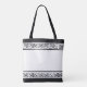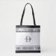 Upgrade your everyday accessory with this customizable black and white tote, featuring a sophisticated Greek key border design on the top and bottom. Highlighted with an elegant monogram initial and personalized name in script, this tote is the perfect blend of modern style and functionality. Ideal for carrying daily essentials, it’s a trendy gift choice for bridesmaids, teachers, or as a thoughtful Mother’s Day or wedding present. Its simple yet stylish design makes it versatile for every occasion, from casual outings to bridal party events or back-to-school preparations.