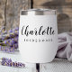 Thermal wine tumbler with your custom name in a cute script font with customizable text "bridesmaid" below.