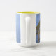 Pretty bridesmaid wedding favors. Beach or destination wedding theme. Background has blue sky with pretty close-up of three palm trees with fronds blowing in the ocean breeze. Fun keepsake mugs for the wedding party. Original Photography design by TamiraZDesigns. Visit my store for more Original designed items via: www.zazzle.com/tamirazdesigns