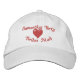 Easily personalize this romantic red love heart design graphic with your custom text to make a great cap for your bachelorette party crew or hen party bash, easily customize the bridesmaid text for your members of your wedding entourage, change the color of the text and valentine heart embroidery to coordinate with your hat color.