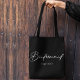 This chic, simple bridesmaid black tote bag features your name underneath elegant white typography. Customize these elegant, modern bridal party gifts for your wedding or bachelorette party.