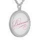 Bridesmaid pink elegant typography script silver plated necklace