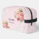 A blush pink background. Decorated with pink roses, flowers and white lace.