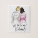 Ask your friends and family to stand beside you with a functional keepsake! On this puzzle, a Blonde Bun Bride is featured with her Black Shoulder Length Bridesmaid. The bottom reads :Will you be my Bridesmaid?". I’m so excited to now be offering my very popular “Will you be my Bridesmaid?” design on puzzles! Don’t see the design you are looking for? Custom orders can be designed for you! Hairstyles and hair color can be changed (sorry-the robe color can’t be changed at this time). Visit the link here to purchase and request custom designs: https://www.etsy.com/listing/269791820/custom-puzzle-custom-design-fee-for-use?ref=shop_home_active_1