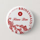 BRIDESMAID Red Floral Boho Peacock Chinese Wedding Button