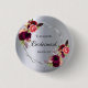 A trendy bohemian boho style for a bridal shower or wedding. Decorated with watercolored roses in burgundy and pink. Elegant faux silver metallic looking background. A faux silver geometric frame. With the text: Bridesmaid written with a hand lettered style script. Template for the Bridesmaid name name and a date. Black colored letters. Perfect for a winter wedding!