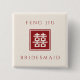 BRIDESMAID Square Double Happiness Chinese Wedding Pinback Button