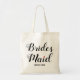 Bridesmaid script calligraphy wedding Tote Bag. The word "Bridesmaid" in ursive script calligraphy and a red dot over the letter "i" adorn this modern tote bag. Below it there is space to add name.