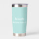 This insulated thermal tumbler is shown in white with a bridesmaid custom name sample.
