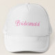 Custom Trucker Style Baseball Cap Hat In White Color printed with Bridesmaid in Pink text typography lettering and digital graphic design by TheFabricSeal print on demand shop at Zazzle.com #ZazzleMade https://www.zazzle.com/store/thefabricseal TheFabricSeal©️Original.