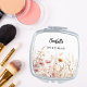 Decorated with wildflowers in beige, cream and pink. Personalize and add your bridesmaid's name. Black handwritten style script.