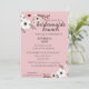 This image shows a bridasmaids brunch invitation with a pink background and floral design. The invitation is for a bridal tea party to honor Annabella Ford. The event is scheduled for July 10th at two in the afternoon at The Pavillion Restaurant, located at 2385 Asteron Street, Jackson, MI.