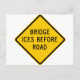 International style road and highway sign advising that the upcoming bridge will ice over before the normal road surface.