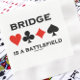 Do you view playing the game of bridge as being a battle between several minds (i.e., you and your partner versus your opponents)? Showcase your wry bridge / duplicate bridge attitude with this paper napkin featuring the four card suits along with the classic bridge saying "Bridge Is A Battlefield" at your next bridge event!