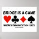 Make others do a double-take with a dose of wry bridge humor with this poster featuring the four card suits along with the following bridge truism saying: "Bridge Is A Game Where Communication Is Key". Great poster gift for any avid bridge player!