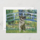 Lily Pond Bridge by Claude Monet, adapted to include a Norwegian Elkhound. With varying hues of green and blue, this serene scene is one of Monet's most popular paintings.
