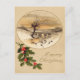 Time to celebrate the holidays. This vintage Christmas print depicts a wintry scene with a bridge and holly.