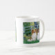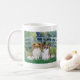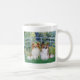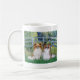 Lily Pond Bridge by Claude Monet, adapted to include two Papillons. With varying hues of green and blue, this serene scene is one of Monet's most popular paintings.