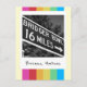 Bridger Bowl, a famous ski area 16 miles outside of Bozeman, Montana, is a hallmark of the town. The signs along Main Street are a welcome sight for skiers from around the world! This vintage style black and white photograph, on a background inspired by retro colors and instant camera film slides, is an eye-catching postcard for anyone!