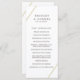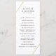 Modern geometric wedding program with two gold lines, one across the top left and one across the bottom right over a white background. The front has your ceremony events and the back has your wedding party. A minimalist design that still comes across as chic and stylish.