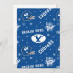 This holiday-themed design features the BYU logo in blue and white with a central oval "Y" emblem. Surrounding elements include "Brigham Young," "Cougars," and "BYU" text in bold, collegiate-style fonts, as well as a BYU football helmet to emphasize school spirit. Blue snowflakes and scattered dots bring a festive, wintry vibe to the pattern. This design combines holiday cheer with BYU pride, perfect for the holiday season.