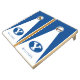 Natural Wood Cornhole Set, Royal Blue and Yellow bags