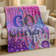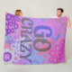 This sherpa blanket is bursting with energy and color. The hand drawn design features overlapping circles in pink, purple, blue, and peach with the bold phrase “GO CRAZY” splashed across the center. A custom initial sits in the bottom corner, making it personal and unique. Soft, cozy, and full of personality, this blanket is perfect for teens who love vibrant style and a playful message. Great for lounging, sleepovers, or adding a pop of fun to any bedroom.