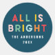 Bright colorful navy blue fun modern 1 photo Christmas family all is bright sticker label.