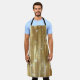 Great color and even though I ordered the kid size, it covers well enough to use during the holidays. I am not a big woman and prefer a shorter apron. I stand 5"6" and the length of the garment goes to mid-thigh. The tie straps fit well at my waist and even though there is no neck strap adjustment, the opening is plenty big enough. I am happy with the size and fit. I am sharing my apron with my 10 year old grandson, too! The color is vibrant and looks good, as shown on the website. The stitching looks strong and reinforced. Photographed is front side and back side of the apron, reinforced straps and coloring. My phone camera may not be the best at showing the details.