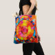 Eye-catching bag printed in an abstract patchwork design in bold colors. Each side is different for double the fun!
