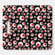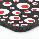 This seat or kneeling cushion has a cool abstract of bright circles in white with vibrant red circles inside on a black background.