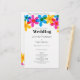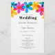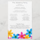 These easy to customize wedding programs offer a modern take on retro style with hippie daisy flowers in bright yellow, blue and magenta pink. The hand drawn graphics are designed to imitate classic risograph style printing. The text is in simple black printing against a clean white background.