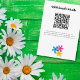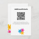 These easy to customize wedding enclosure cards offer a modern take on retro style with hippie daisy flowers in bright yellow, blue and fuchsia pink. The hand drawn graphics are designed to imitate classic risograph style printing. The link for the QR code and all of the text on these invites is ready for your custom touch with simple black printing against a clean white background.