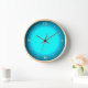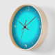 Bright Aqua Blue Moon with Natural Wood Frame Clock