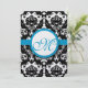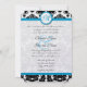 Bright Aqua Damask Heart Swirls Wedding Invitation