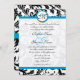 Plain white envelopes are included with paper invitations and will come to fit the invitation size you select. If you don’t need the envelopes, you may choose to not receive them by selecting the dropdown below "Envelopes" and choosing "None." If you’d like to have a design on your envelopes, you can browse all of these available envelopes to find the design that complements your Bright Aqua Damask Swirls Wedding Invitation.